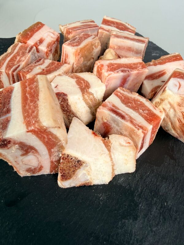 El jarrete destaca por su excelente comportamiento en cocción lenta: colágeno que se funde progresivamente, textura gelatinosa natural y carne que se desprende del hueso de forma suave, ofreciendo un bocado untuoso y lleno de jugo. Su presentación en pieza individual permite un emplatado elegante, ideal para restauración y cocina tradicional renovada.