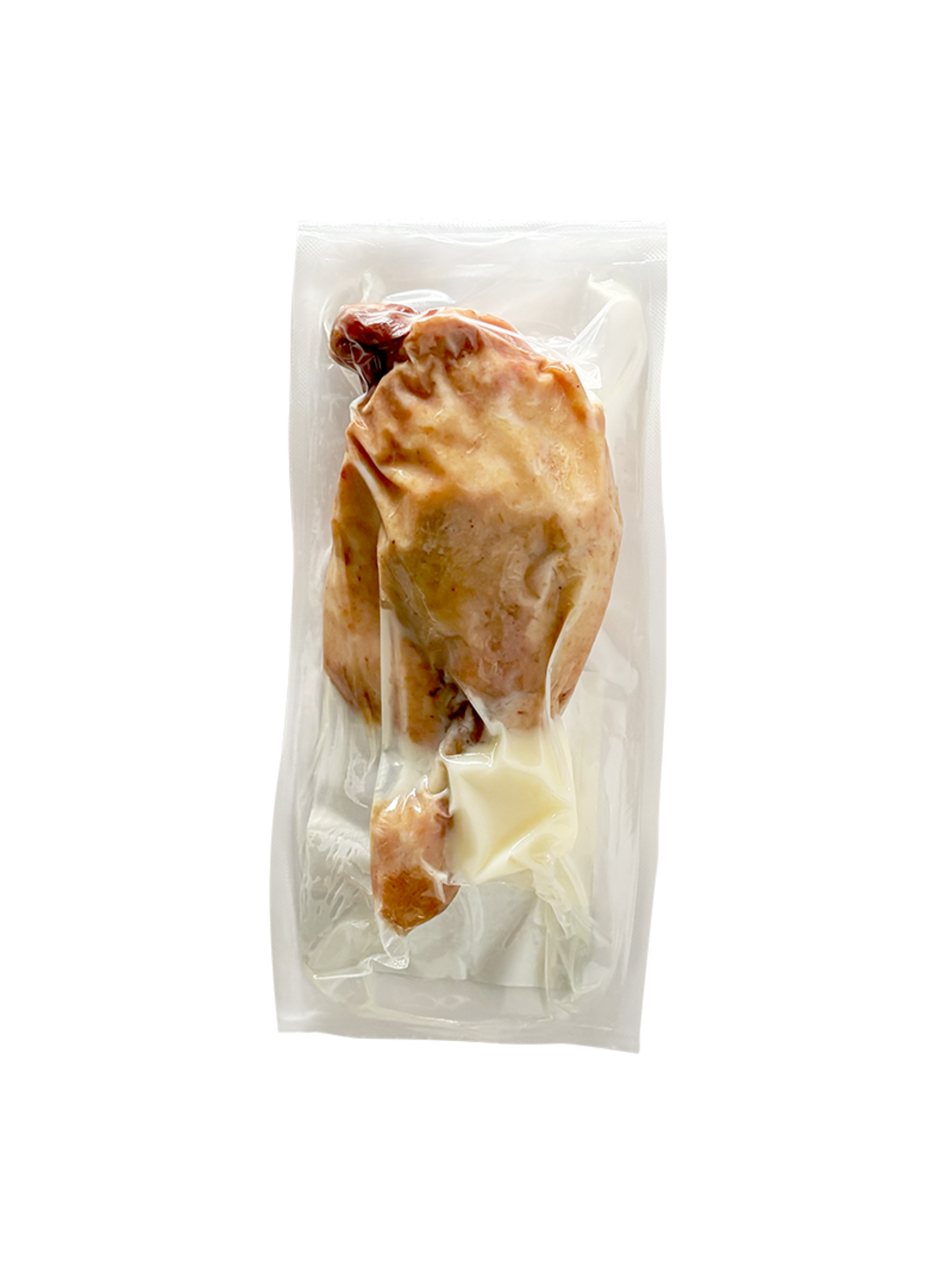 El muslo de pato confitado individual es una referencia imprescindible en restauración y cocina gourmet. Elaborado a partir de patos seleccionados, cada muslo se cocina lentamente en su propia grasa siguiendo la receta tradicional francesa, logrando una carne tierna, jugosa y aromática, que se desprende del hueso con facilidad.