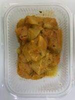 - Preparado artesanalmente con carne de pollo magra troceada y marinada con comino, pimentón, cúrcuma, ajo y otras especias naturales.