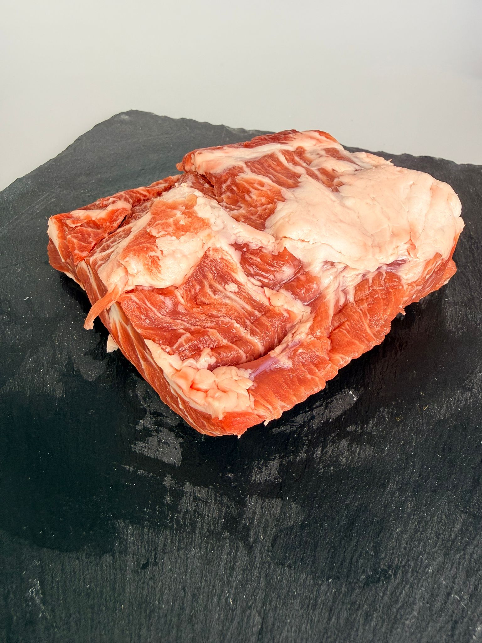 Corte premium: Extraído del cabecero del lomo, la presa combina suavidad y jugosidad con una infiltración de grasa natural que se funde al cocinar.