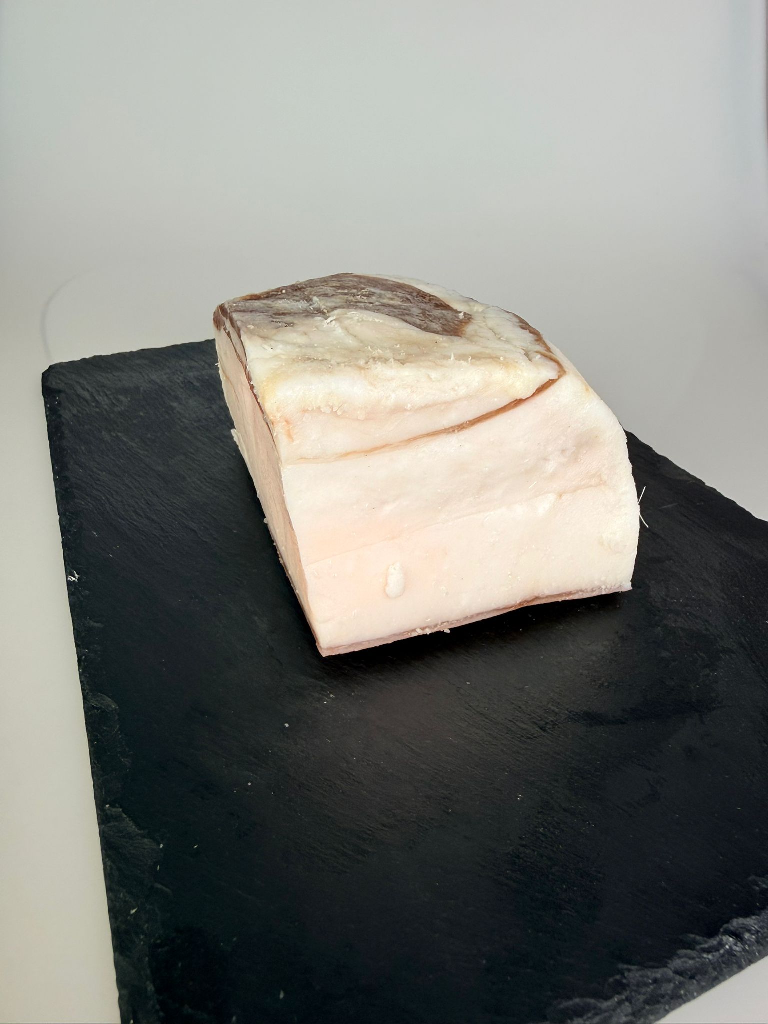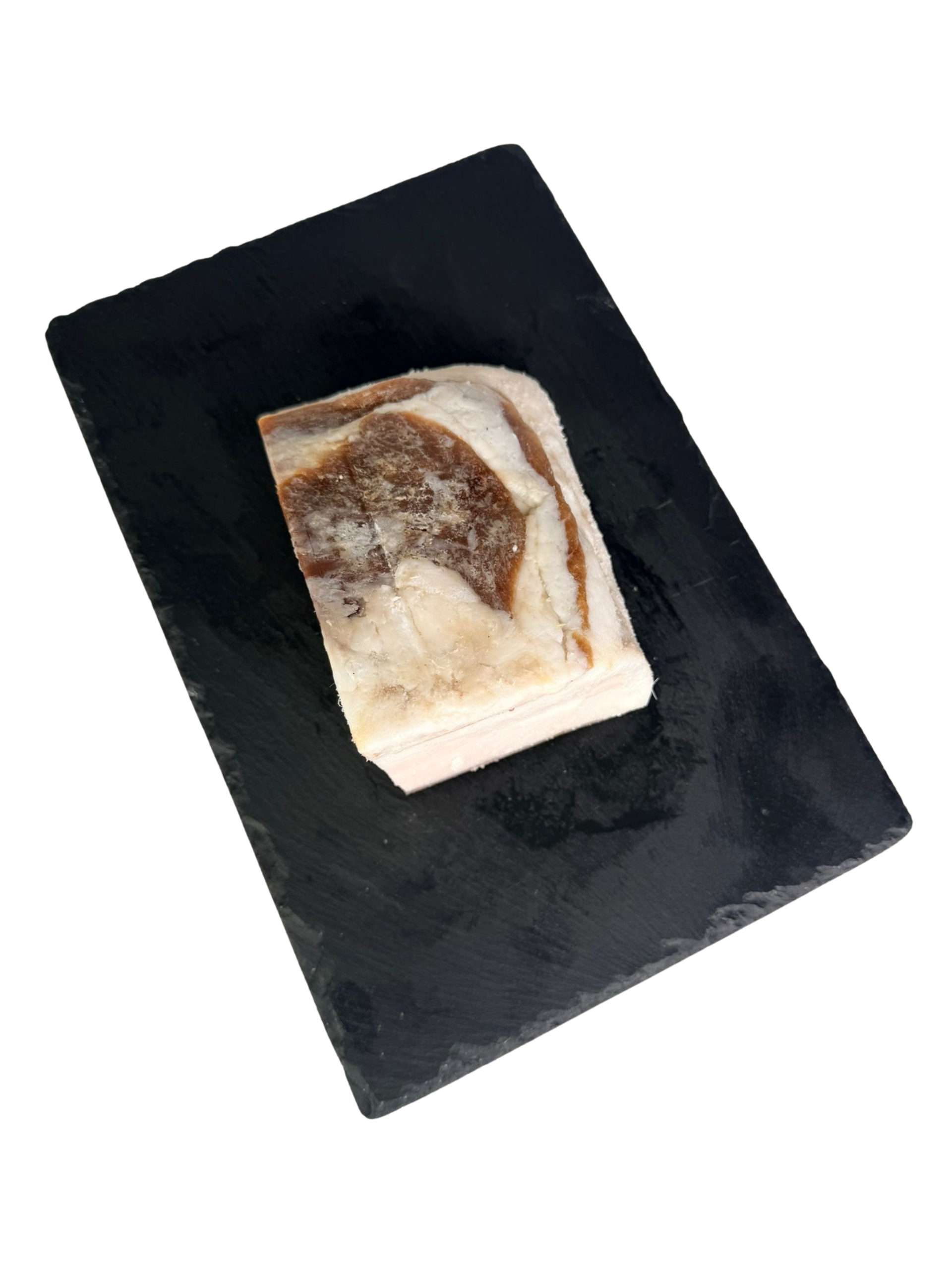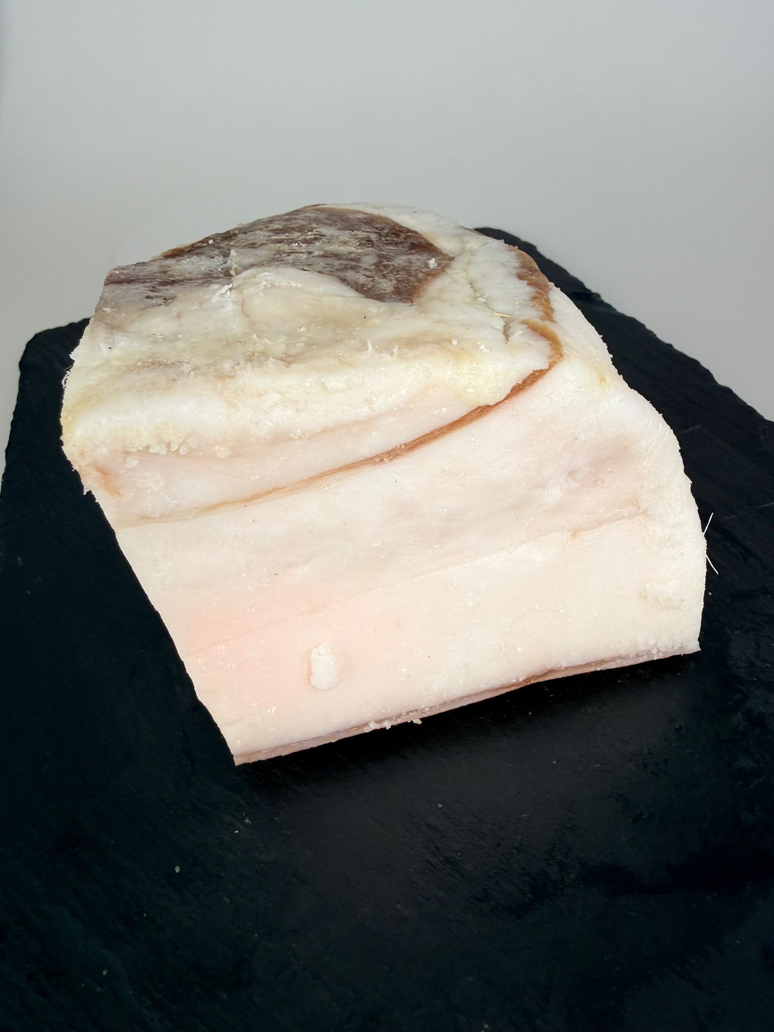Este tocino salado de cerdo proviene principalmente de la grasa dorsal (espalda) del cerdo, con algunas vetas de magro. Su función principal es aportar sabor intenso y grasa pura a los guisos. La panceta curada, en cambio, se saca de la ventresca (la barriga) y tiene muchas más capas de carne (magro) entre la grasa.